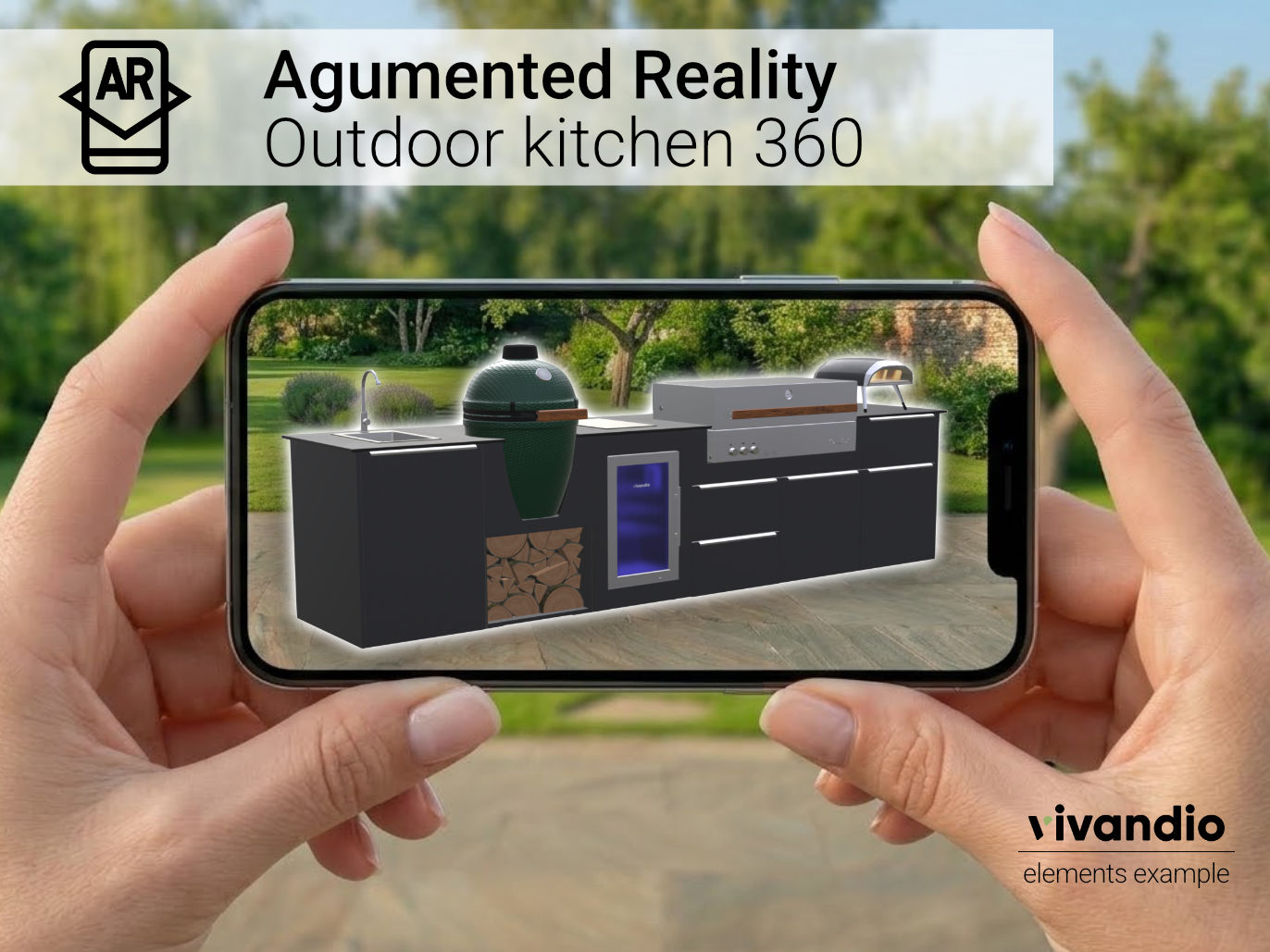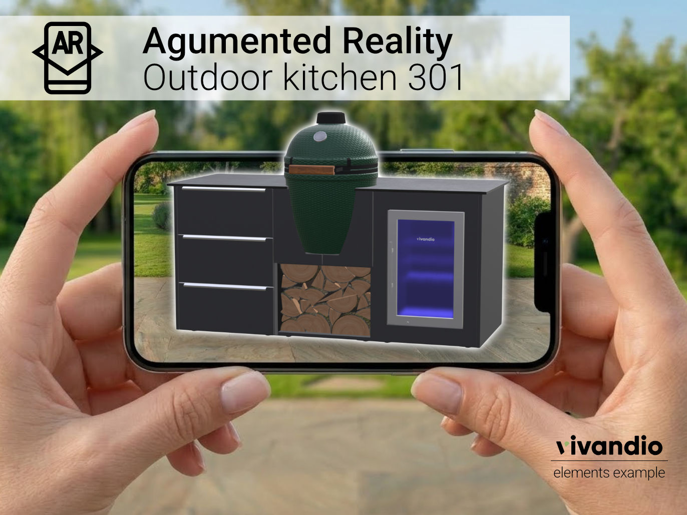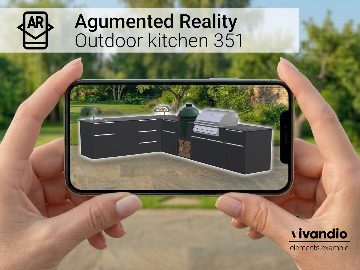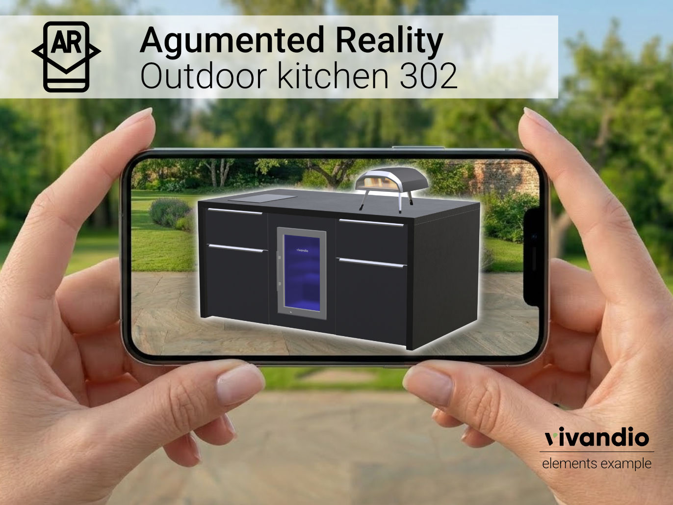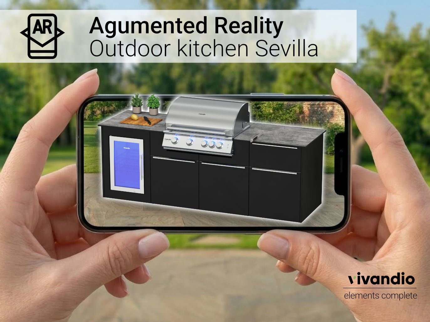 Platziere die vivandio elements Serie per Augmented Reality direkt in deinem Garten oder auf deiner Terrasse – als elegante Einbauküche, großzügige Kochinsel oder maßgeschneiderte Küchenzeile. Die dargestellten Konfigurationen zeigen nur einen Ausschnitt der vielfältigen Planungsmöglichkeiten: Von der kompakten Lösung bis hin zum voll ausgestatteten Outdoor-Küchenkonzept ist alles realisierbar – exakt abgestimmt auf deinen Stil, deinen Raum und deine Ansprüche.