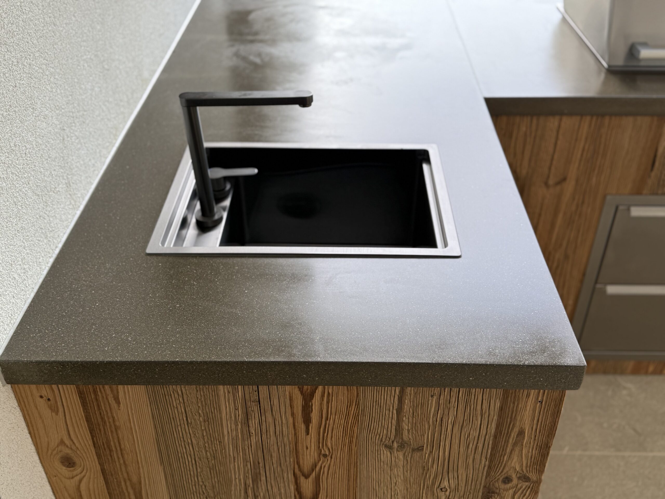 Alle unsere Spülen und Armaturen sind aus Edelstahl gefertigt. Für Farbeffekte setzen wir auf das so genannte PVD Verfahren und keine klassische Lackierung. Bei dieser physikalischen Gasabscheidung, wird das Beschichtungsmaterial mittels Laserstrahlen zunächst in Gas verwandelt um dann die Partikel in einer Vakuumbedampfung aufzutragen. So erhalten wir eine besonders harte und resistente Farbe in “GunPowderBlack”, die den harten Belastungen einer Spüle und dem Outdoorbereich gerecht werden.