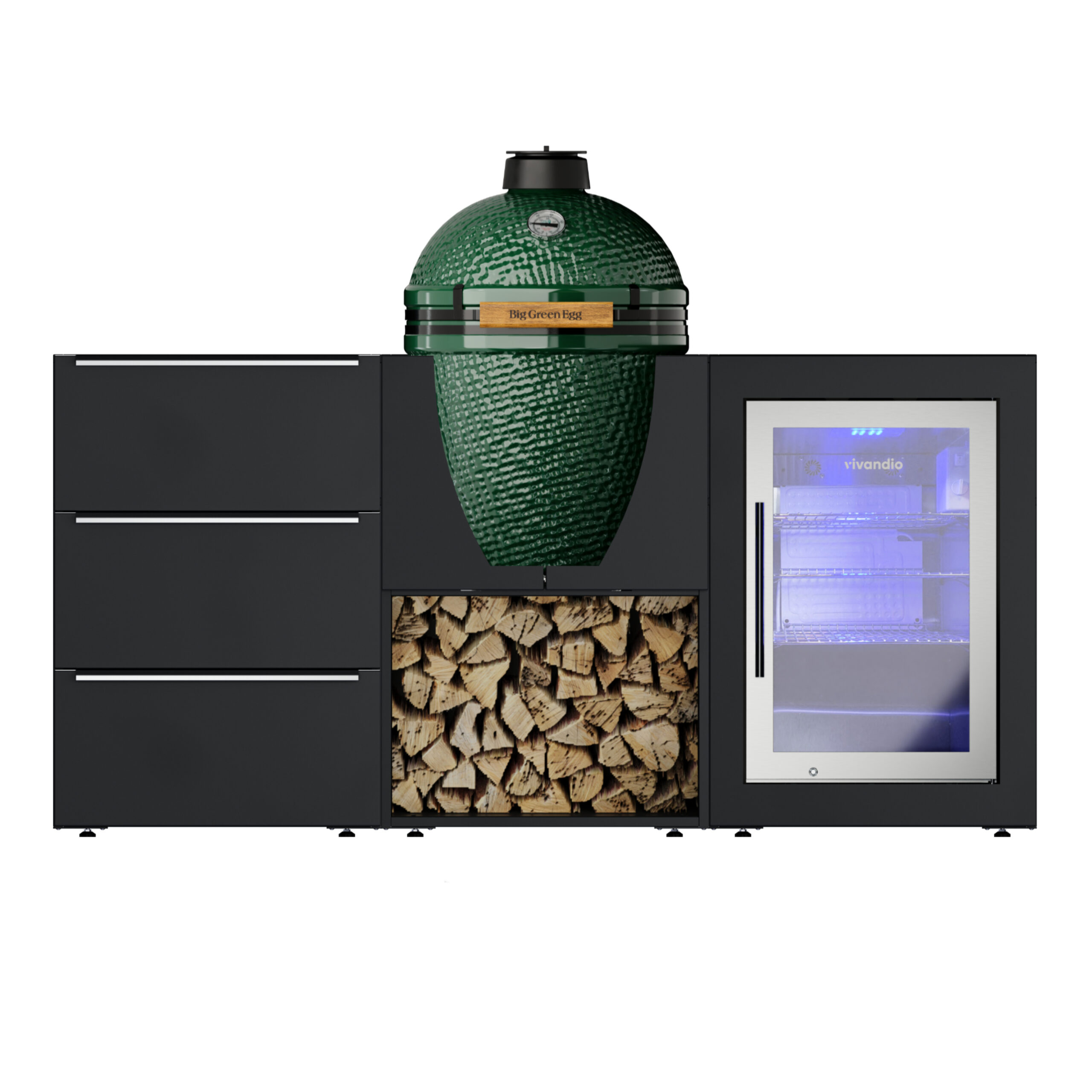 - Beispielhafte Konfiguration einer kompakten vivandio elements Outdoorküche mit bzw. für ein Big Green Egg Keramikgrill