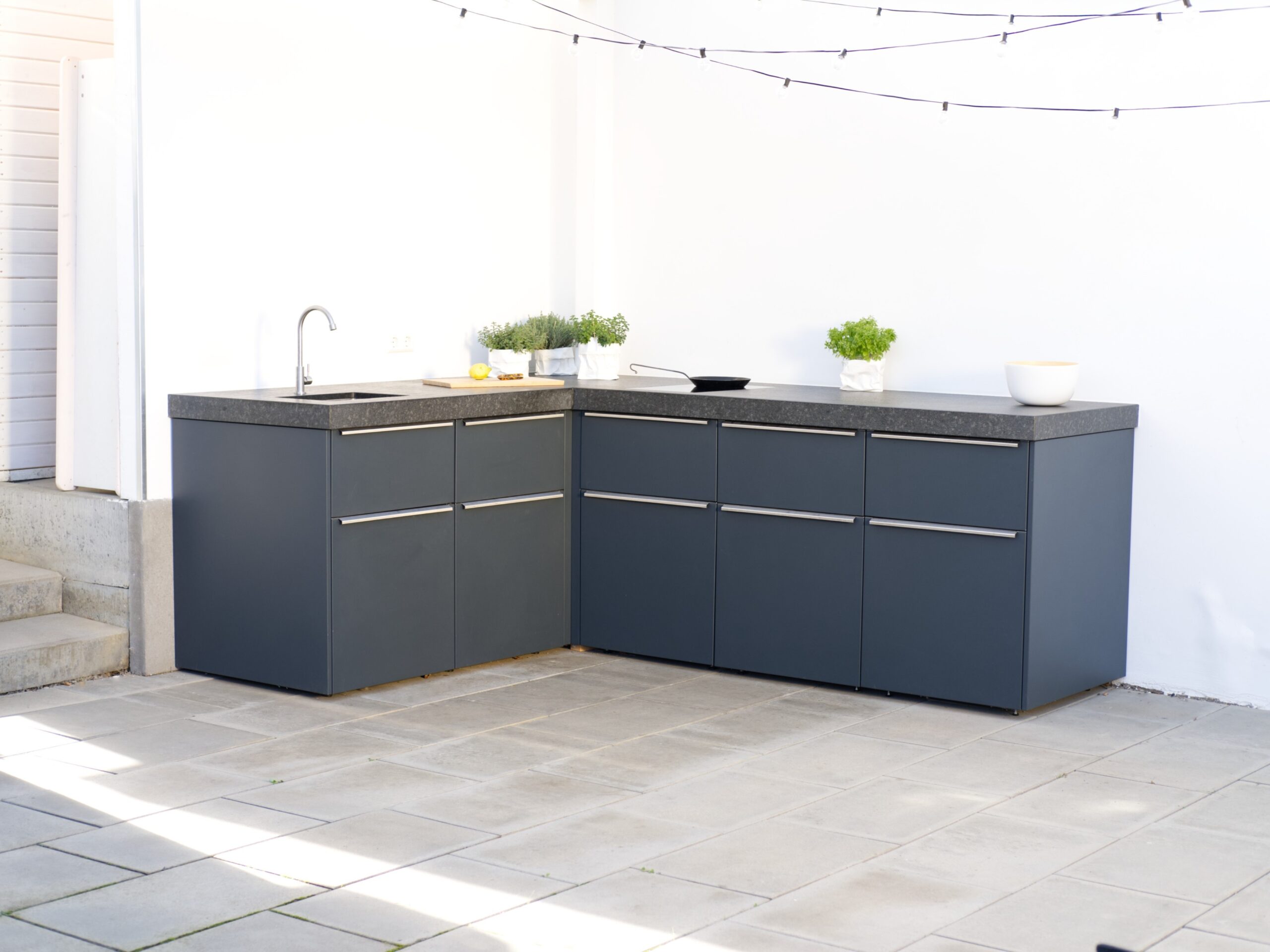 - Outdoor Küchenkorpus aus Edelstahl mit witterungsbeständiger Pulverbeschichtung