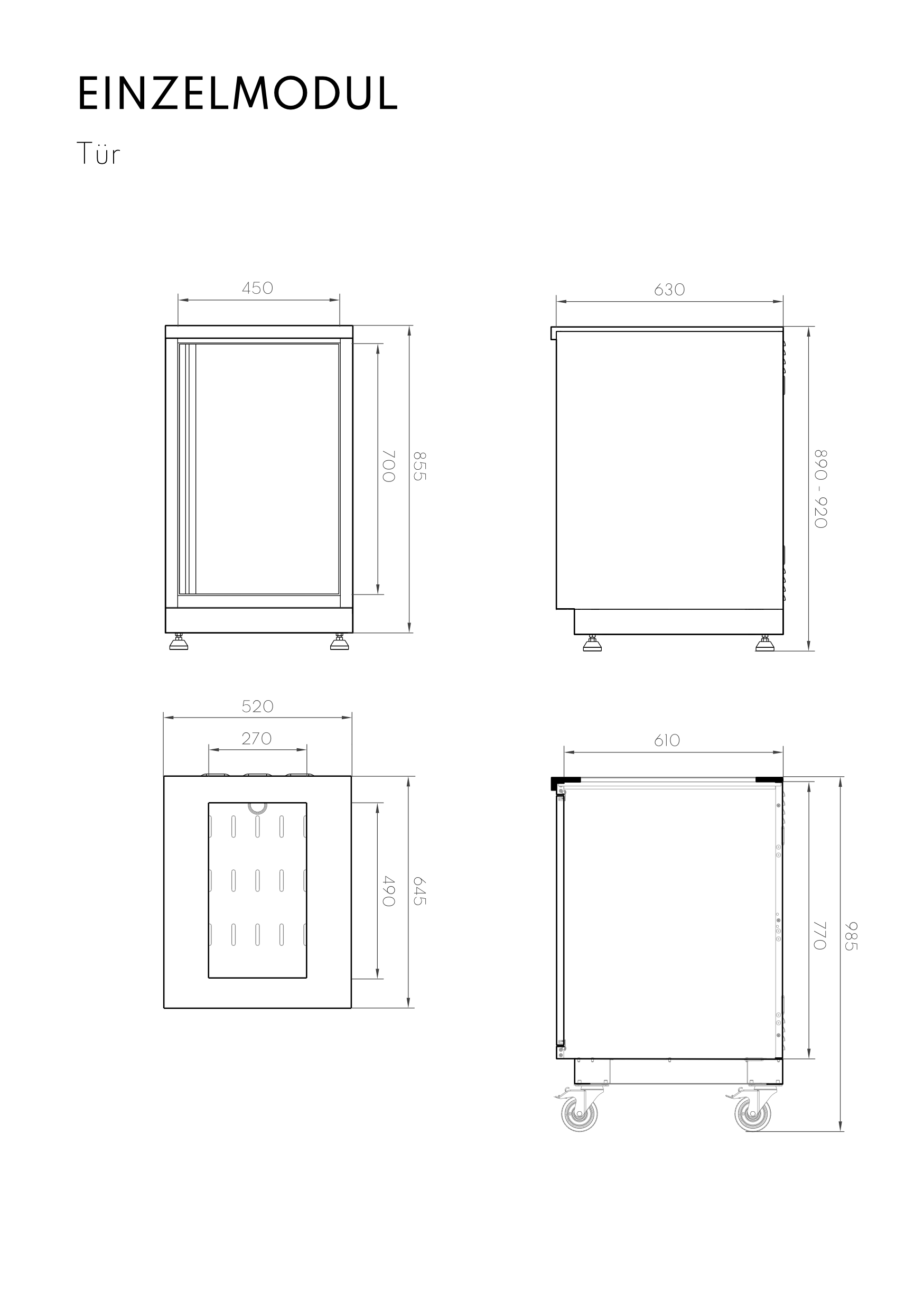 - Kühlschrankmodul in Ausführung mit Rollen und Arbeitsplatte verfügbar